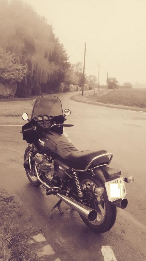 It's quite rural, so to get used to it, tried some 'B' and unclassified roads, some with grass growing down the middle. Took a few miles to work out or find a comfy position on the saddle; the clutch seemed heavy and the throttle 'stiff'.....seem to recall Guzzi's were renowned for a'stiff' throttle...(